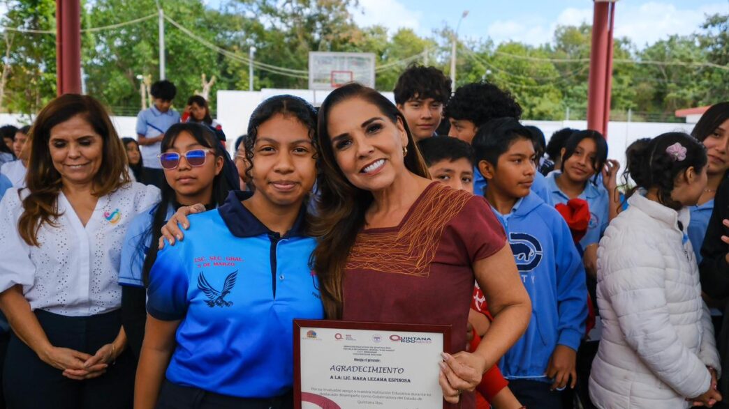Cumple Mara Lezama y entrega nuevo domo a la Secundaria General “8 de Marzo” en Cancún