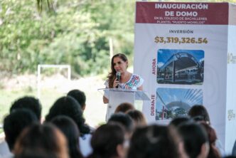 Inauguran Mara Lezama y Blanca Merari nuevo domo en el Colegio de Bachilleres de Puerto Morelos