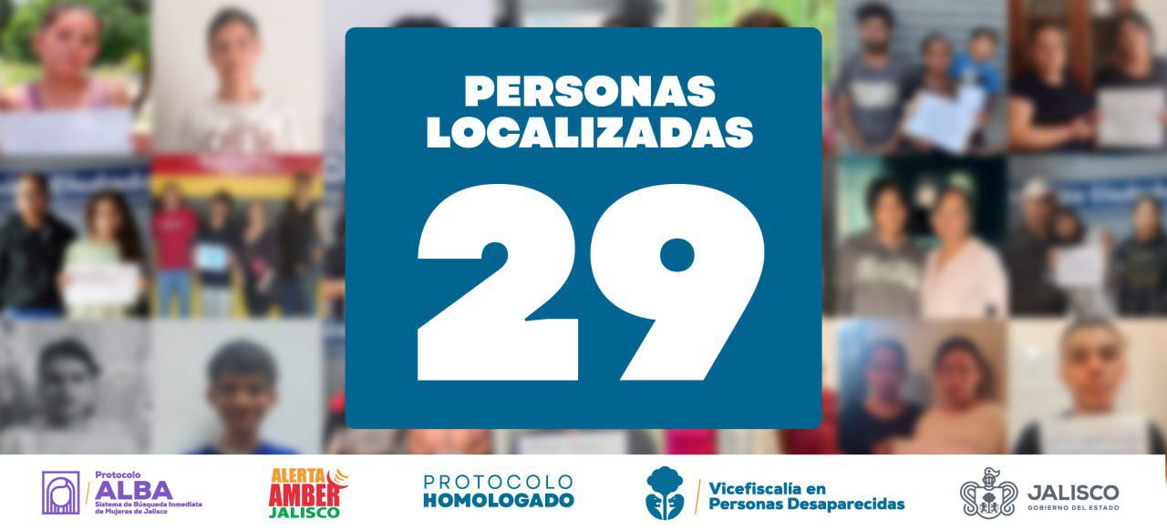 Jalisco, México.- Durante la semana del 16 al 22 de febrero, se registró la localización de 29 personas reportadas como desaparecidas en distintos municipios del estado.