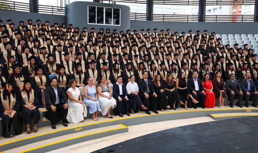 CANCÚN.- La Presidenta Municipal, Ana Paty Peralta, junto a la gobernadora, Mara Lezama, convivió con los 224 alumnos egresados de tres licenciaturas, una ingeniería y una especialidad de maestría de la Universidad Tecnológica de Cancún (UT), de la generación 2023-2025, a quienes exhortó a seguir adelante para desempeñarse como profesionales en sus áreas para consolidar un mejor Cancún.