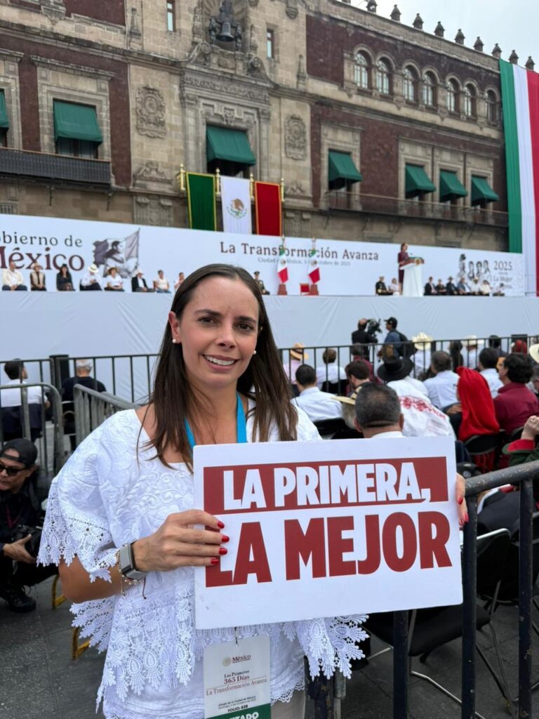 CANCÚN.– La Presidenta Municipal de Benito Juárez, Ana Paty Peralta, asistió al Primer Informe de Gobierno de la Presidenta de México, Claudia Sheinbaum Pardo, celebrado ante miles de ciudadanos en el Zócalo capitalino, donde refrendó su respaldo y total sintonía con el proyecto de transformación nacional que encabeza la mandataria federal.
