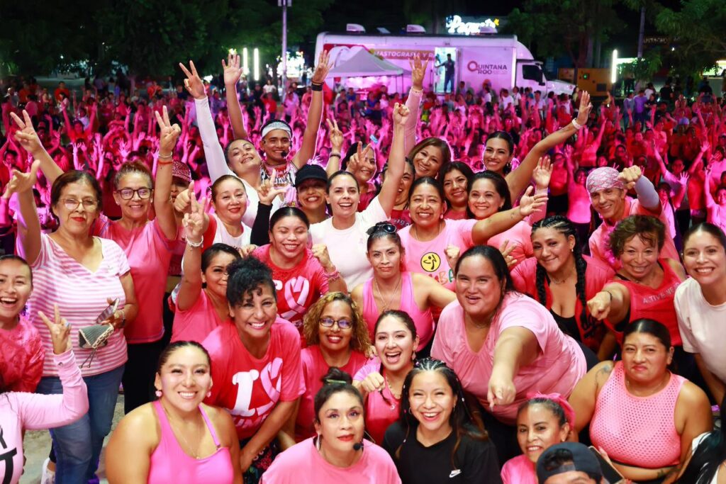 CANCÚN.- El rosa se apoderó del Parque de las Palapas en una tarde llena de buena vibra, música, pasos de zumba y sonrisas, donde la Presidenta Municipal, Ana Paty Peralta, se sumó con entusiasmo a la iniciativa “Muévete por la vida”, impulsada por el Instituto Municipal de la Mujer (IMM) en el marco de Octubre Rosa, mes dedicado a crear conciencia sobre la prevención del cáncer de mama.