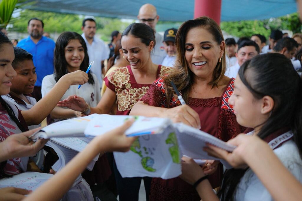 CANCÚN.- Con el apoyo del Ayuntamiento de Benito Juárez, la gobernadora Mara Lezama Espinosa puso en marcha el programa “Pasos para la Transformación” en la Secundaria Técnica 20 Rafael Ramírez Castañeda, una iniciativa estatal que busca beneficiar a estudiantes de nivel básico mediante la entrega gratuita de calzado deportivo.