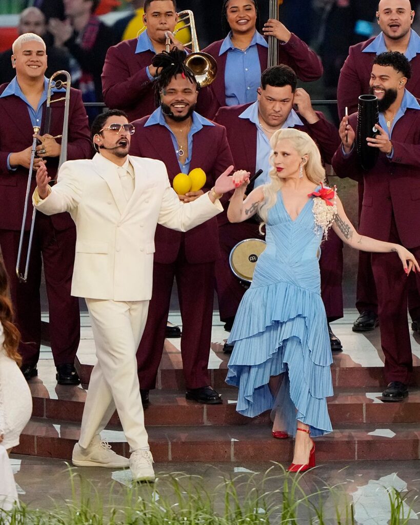 Durante el espectáculo, Bad Bunny estuvo acompañado por Ricky Martin y Lady Gaga, invitados especiales que elevaron el impacto mediático del medio tiempo y reforzaron el mensaje de diversidad cultural.