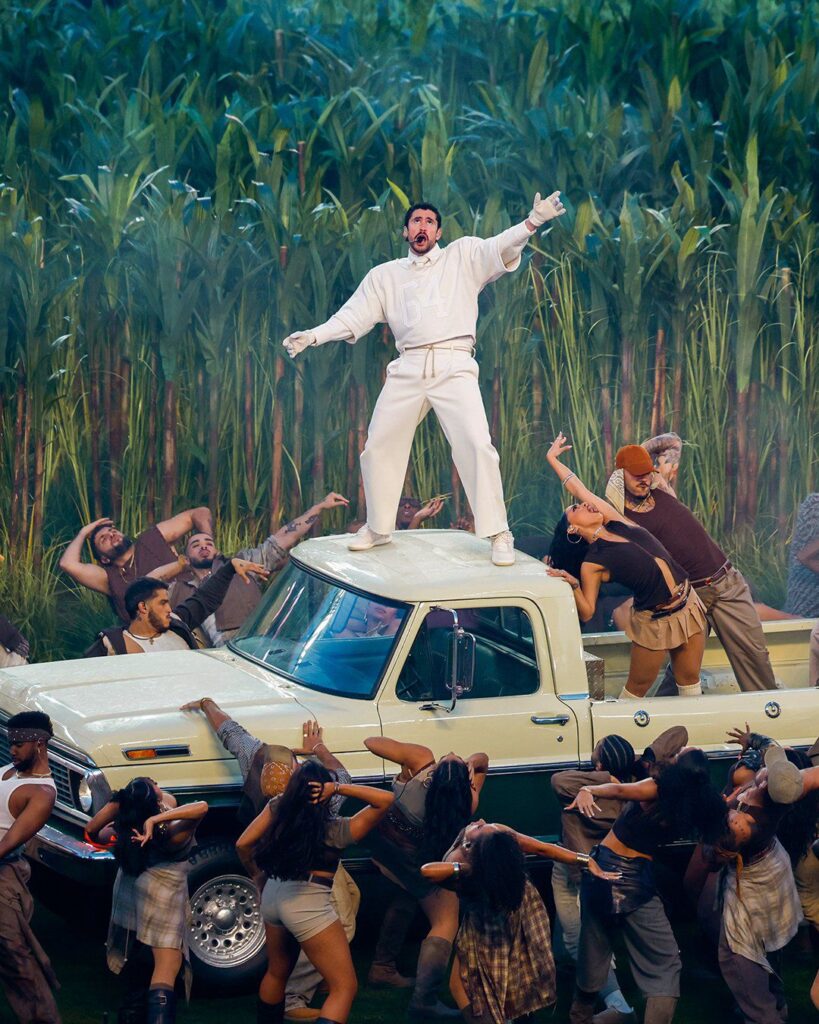 El artista puertorriqueño presentó un repertorio que incluyó temas como “Tití Me Preguntó”, “El Apagón” y “Café Con Ron”, combinando elementos visuales latinos, coreografías multitudinarias y un montaje escénico de alto impacto.