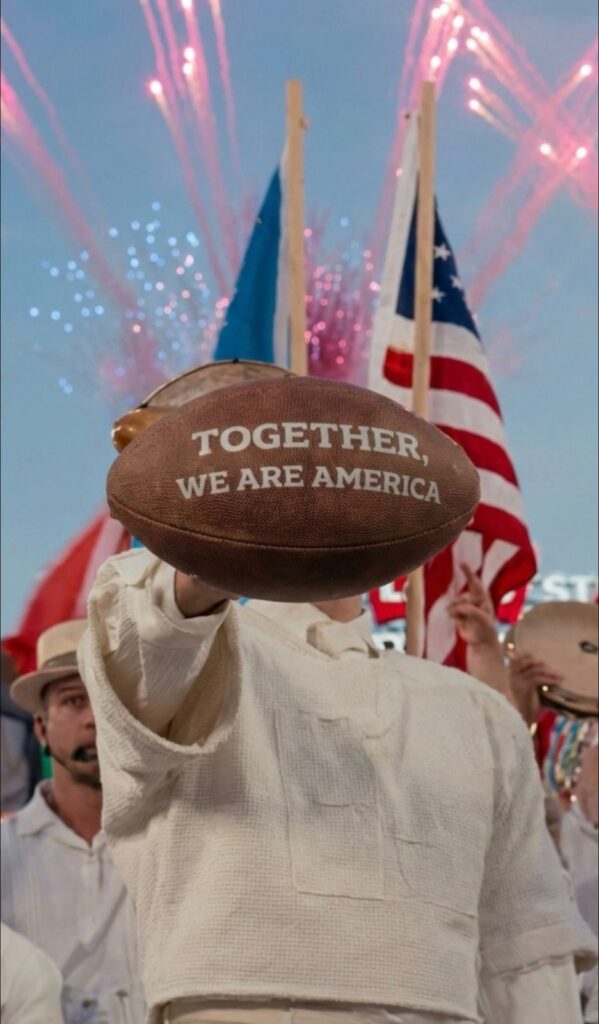 Durante el show, Bad Bunny incluyó frases como “Lo único más poderoso que el odio es el amor”, además de una pelota con la leyenda “Juntos somos América”, generando debate entre seguidores y críticos.