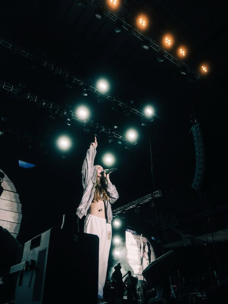 Uno de los momentos más conmovedores de la noche llegó con “Luz sin gravedad”, donde Belinda, visiblemente emocionada, rompió en llanto al ver al público cantar con ella bajo un mar de luces de celulares.