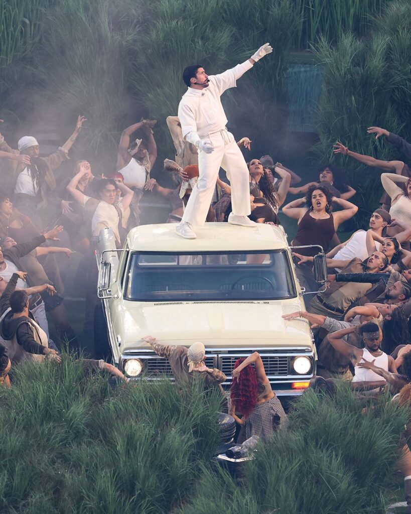 El gesto fue interpretado como una celebración del amor y la cultura latina, además de una muestra de la creatividad con la que Bad Bunny abordó uno de los escenarios más vistos del mundo.