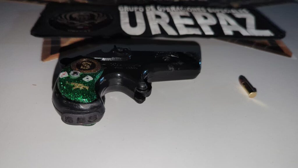 Tras marcarle el alto y realizarle una revisión conforme a protocolo, los oficiales localizaron un revólver con un tiro útil, por lo que fue asegurado de inmediato.