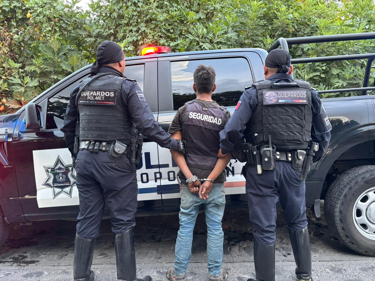 El hombre, identificado como Elías “N”, de 34 años, intentó identificarse como empleado de una empresa de seguridad privada; sin embargo, no presentó credenciales ni permisos que acreditaran su trabajo en esa función.