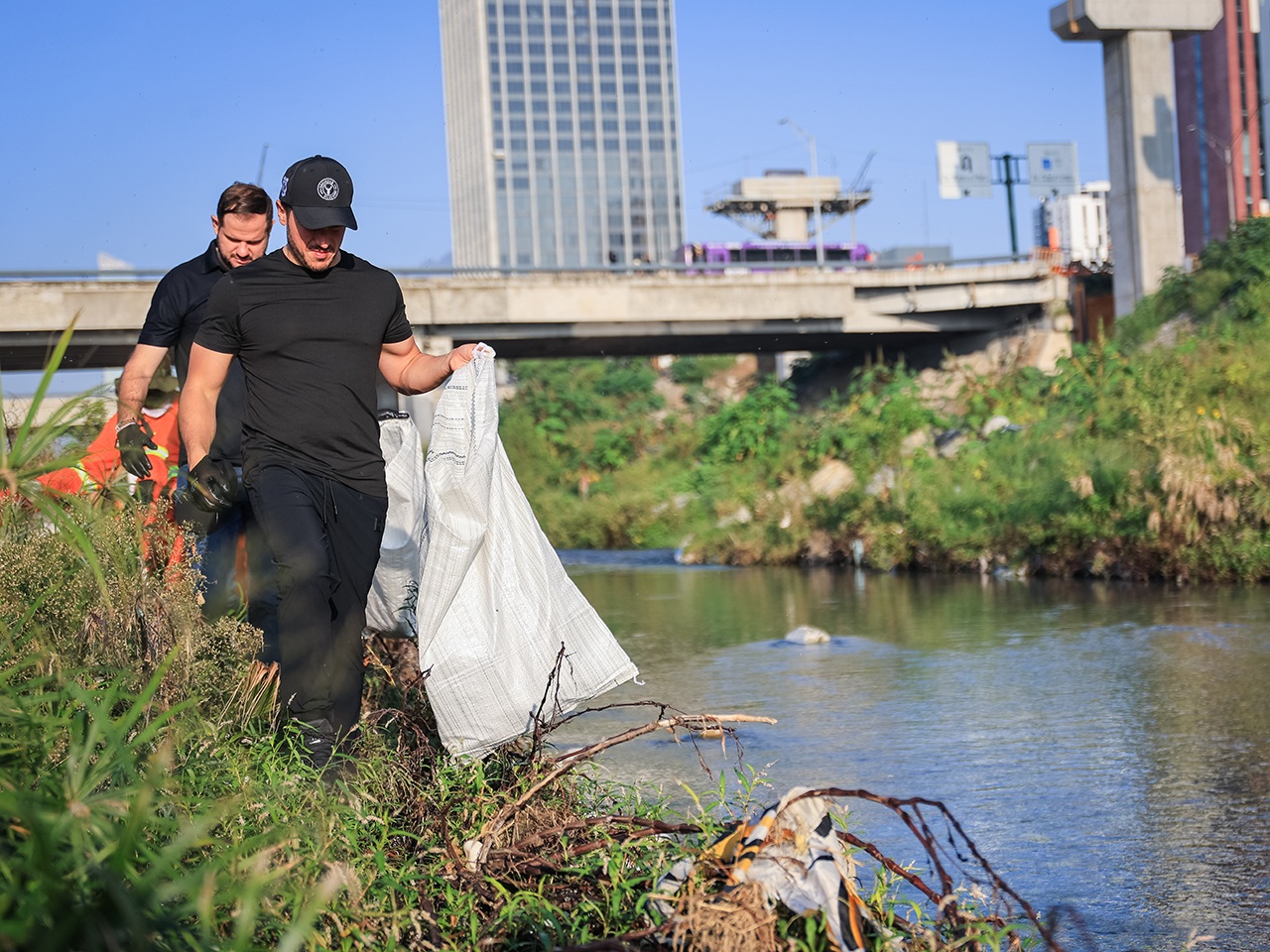 NUEVO LEÓN.- Al encabezar la Brigada de Limpieza número doce en el Río Santa Catarina, el Gobernador Samuel Alejandro García Sepúlveda señaló que habrá cero tolerancia contra quien tire basura en el cauce.