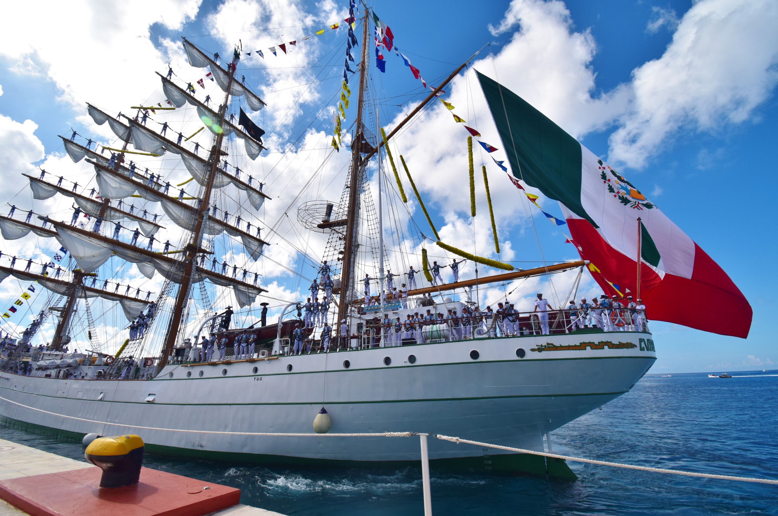 “Ayer, domingo 2 de noviembre, recibimos con enorme orgullo en nuestro puerto al Buque Escuela “Cuauhtémoc”, que regresó de su travesía internacional desde la ciudad de Nueva York, siendo Cozumel el primer puerto mexicano en recibirlo. ¡Bienvenidos sean a Cozumel, marinos del Cuauhtémoc!”, expresó Chacón con emoción.