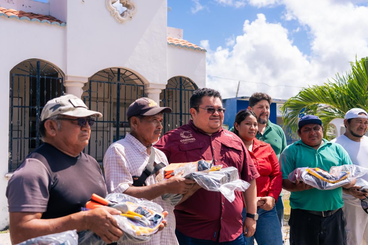 COZUMEL.- El presidente municipal, José Luis Chacón Méndez, realizó entrega de equipo y suministros al departamento de Panteones, para mejorar las condiciones laborales del personal operativo y garantizar el adecuado mantenimiento de los cementerios de la isla.
