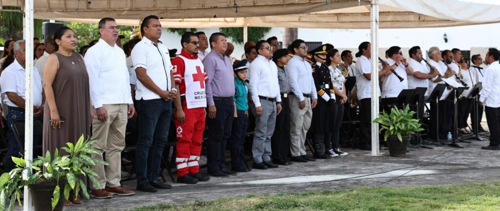 La Banda de Música y el Coro del Estado entonaron los himnos de Quintana Roo y Nacional Mexicano, mientras que escoltas y banda de guerra rindieron honores al lábaro patrio.