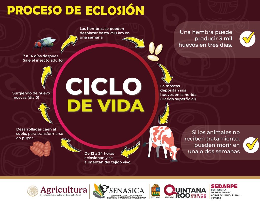 CHETUMAL.- La Secretaría de Desarrollo Agropecuario, Rural y Pesca (SEDARPE) informó que, en conjunto con el Servicio Nacional de Sanidad, Inocuidad y Calidad Agroalimentaria (SENASICA), continúa con la vigilancia permanente para atender la plaga zoosanitaria del gusano barrenador del ganado. Al corte del 19 de enero, se han contabilizado 394 casos acumulados, de los cuales 45 permanecen activos.