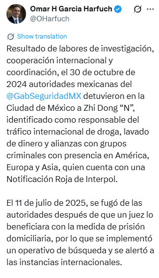 - Zhi Dong Zhang fue arrestado originalmente en Cuba el 31 de julio de 2025, tras huir de México donde se le había concedido arresto domiciliario.