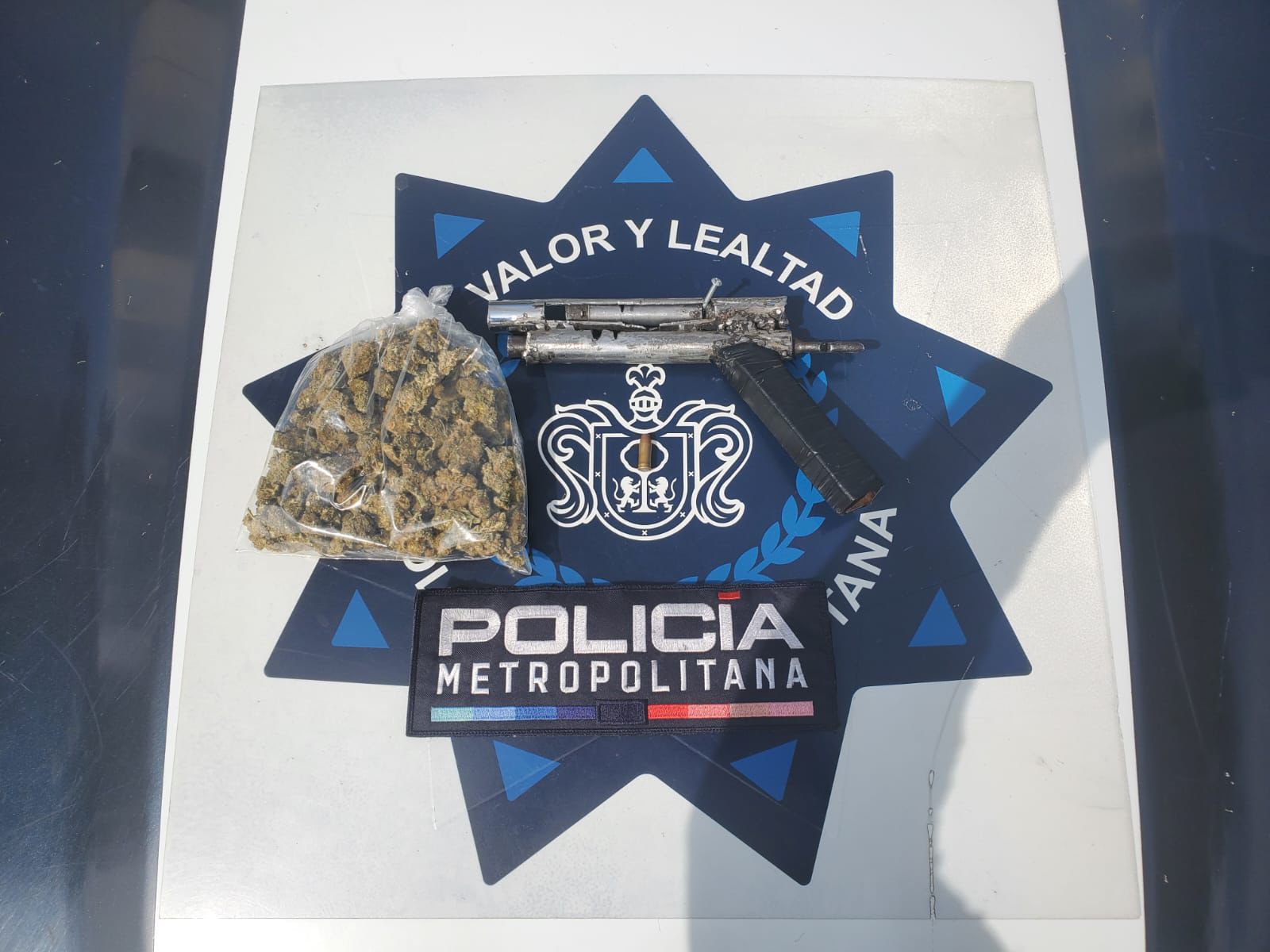 El primer aseguramiento ocurrió en la colonia Hacienda Santa Fe, donde un hombre intentó huir al detectar la presencia policial. Tras ser detenido, se le localizó un arma hechiza con cartucho calibre .380, además de una bolsa con aparente marihuana con un peso aproximado de 80 gramos.