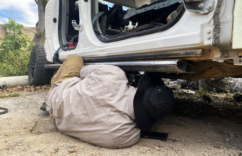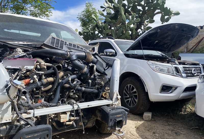 En total, fueron aseguradas diez camionetas, todas con alteraciones en sus números de serie, entre ellas: una Ford F-150, una Nissan Frontier, una Nissan Estacas, una Chevrolet Colorado, una Porsche, una Dodge Ram, una Acura RDX, así como dos chasis, uno de Nissan Frontier y otro de Chevrolet Silverado.
