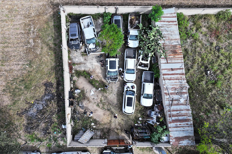 Dentro del inmueble fue localizado un Chirey Tiggo con reporte de robo, además de otros nueve vehículos, algunos semi desmantelados y sin placas de circulación.