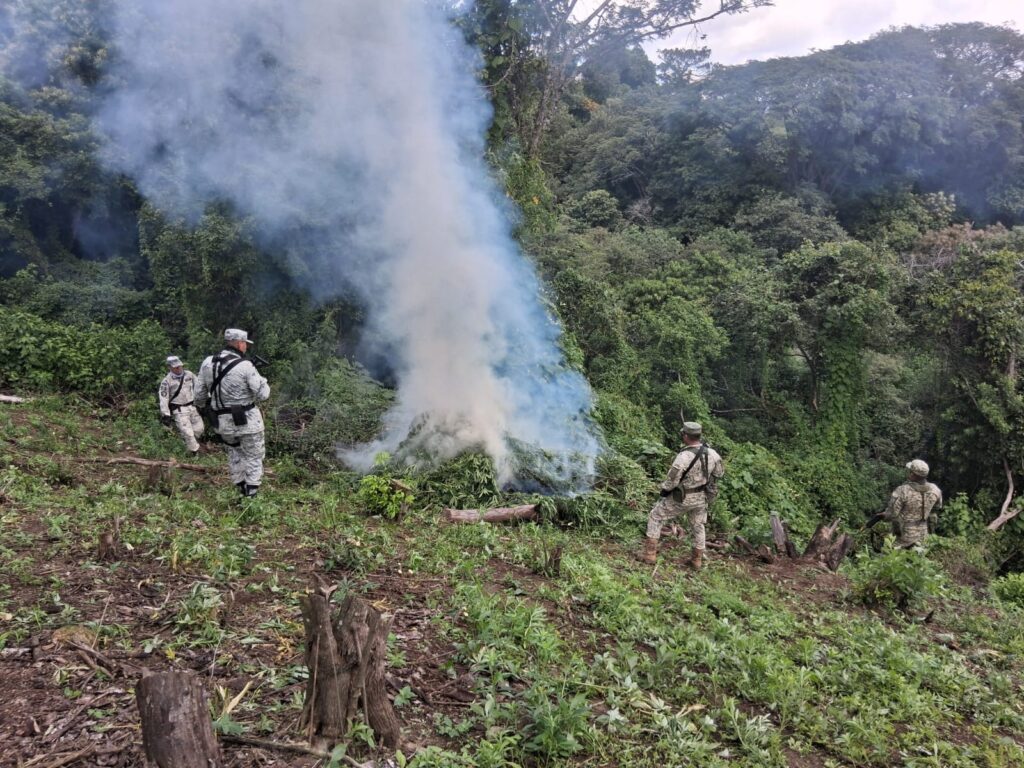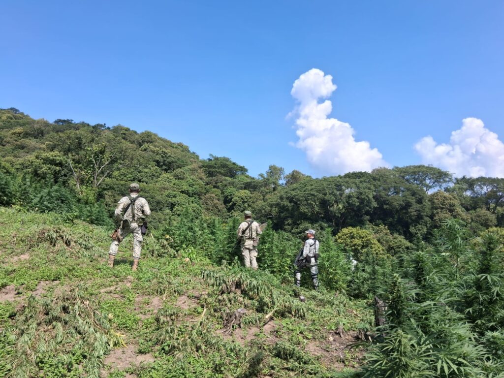 En el operativo, los agentes incineraron y arrancaron alrededor de 99 mil 400 plantas de cannabis sativa, distribuidas en nueve sembradíos ubicados en zonas de difícil acceso.