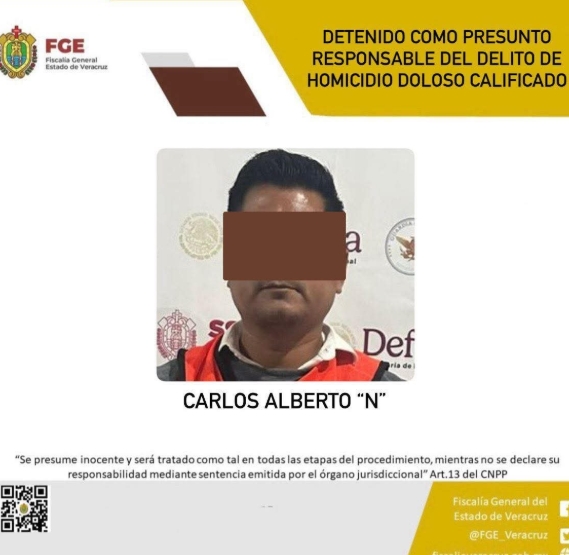 VERACRUZ.- La Fiscalía General del Estado de Veracruz informó que este 1 de enero de 2026 fue detenido Carlos Alberto Ventura de la Paz, exalcalde del municipio de Atoyac, acusado del delito de homicidio doloso calificado. La arresto se realizó apenas minutos después de que concluyera su periodo al frente del Ayuntamiento y perdiera su fuero constitucional.
