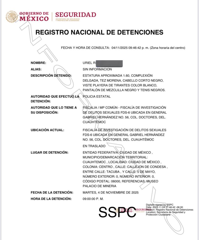 La Fiscalía General de Justicia de la Ciudad de México (FGJCDMX) confirmó que el individuo fue trasladado al Ministerio Público, donde se abrió una carpeta de investigación por los delitos de acoso y alteración del orden público.