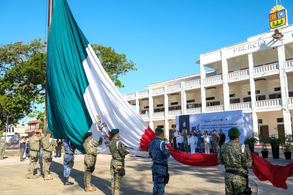 CHETUMAL.- Con el izamiento de la Bandera Nacional en la explanada de Palacio de Gobierno, en la capital del estado, la gobernadora Mara Lezama Espinosa encabezó el inicio oficial de los festejos de “Febrero, mes del Ejército y Fuerza Aérea Mexicanos”, una conmemoración que contempla actividades cívicas, culturales, deportivas y de proximidad social en la entidad.
