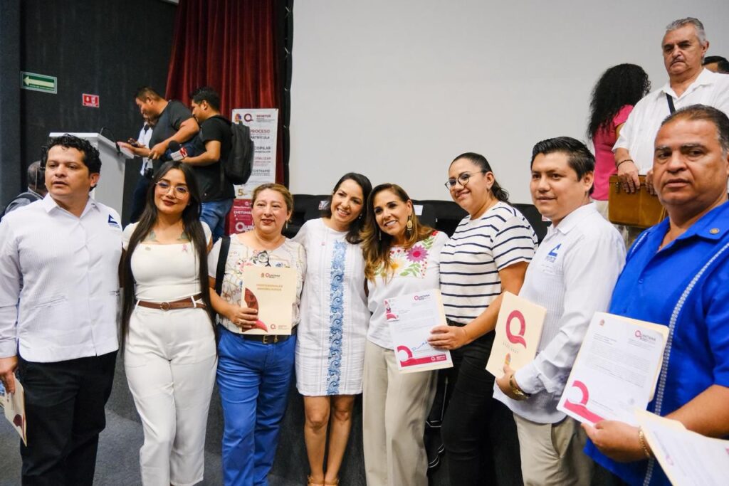 PLAYA DEL CARMEN.- Al entregar 189 constancias y matrículas a profesionales inmobilarios, la gobernadora Mara Lezama Espinosa expresó que se trata de una nueva página en la historia del desarrollo de esta actividad, específicamente en la Riviera Maya, donde el crecimiento no se detiene.