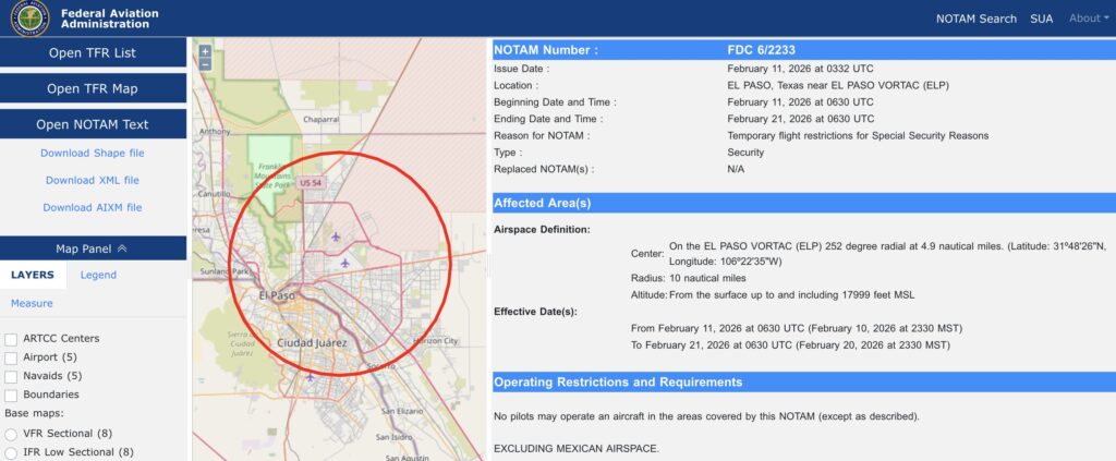 El cierre del espacio aéreo en El Paso afectó a la zona aérea y parte de la zona cercana a Santa Teresa, Nuevo México.