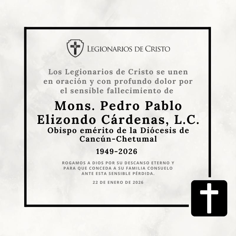 Mons. Pedro Pablo Elizondo Cárdenas, obispo emérito de la Diócesis de Cancún-Chetumal, falleció a los 76 años, según confirmaron los Legionarios de Cristo el 22 de enero de 2026.