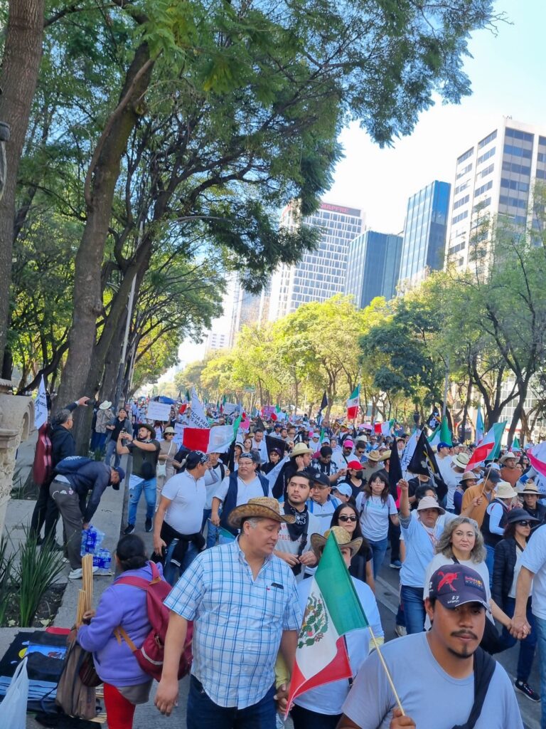 CIUDAD DE MÉXICO. Este sábado 15 de noviembre, miles de personas participan en la “Gran Marcha por la Justicia y la Libertad” convocada por el movimiento Somos Generación Z México, que avanza del Ángel de la Independencia al Zócalo capitalino para exigir un alto a la violencia, la corrupción y la revocación de mandato de la presidenta.