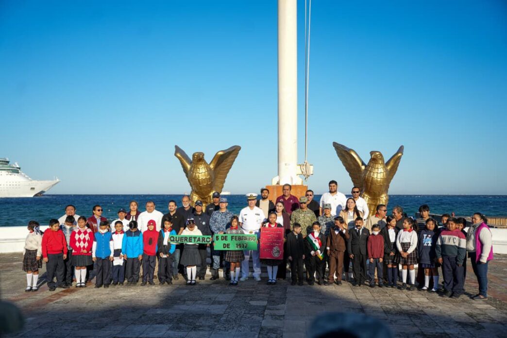 COZUMEL.– Como parte del compromiso con la patria y el fortalecimiento de los valores cívicos, el gobierno municipal que preside José Luis Chacón Méndez llevó a cabo la mañana de este jueves, en la explanada de la Bandera, la ceremonia cívica conmemorativa por el 109 Aniversario de la Promulgación de la Constitución Política de los Estados Unidos Mexicanos de 1917, así como el Izamiento de la Bandera Monumental correspondiente al mes de febrero.