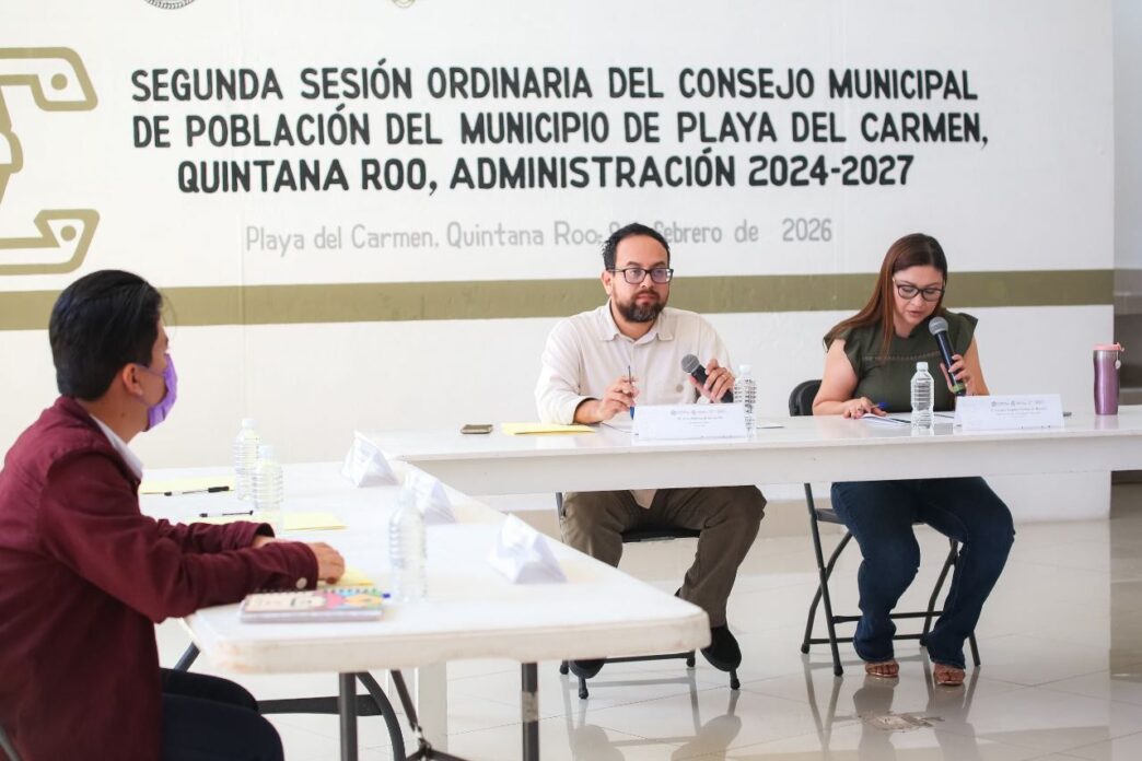 Durante la misma sesión, presidida por el secretario de Salud, José Antonio Uribe Trujillo, se llevó a cabo la toma de protesta de nuevas y nuevos integrantes del Consejo Municipal de Población. Se integraron como vocales María de los Ángeles Sibaja Malpica, titular de la Unidad de Atención al Migrante; Rusbel Pat Cauich, secretario de Justicia Social y Participación Ciudadana; Deyanira Martínez Estrada, directora general del DIF Playa del Carmen; Idania Gamboa Medina, directora general del Instituto de las Mujeres, y José Gabriel Pérez Álvarez, titular del Instituto de la Juventud, fortaleciendo la representación institucional del órgano colegiado.