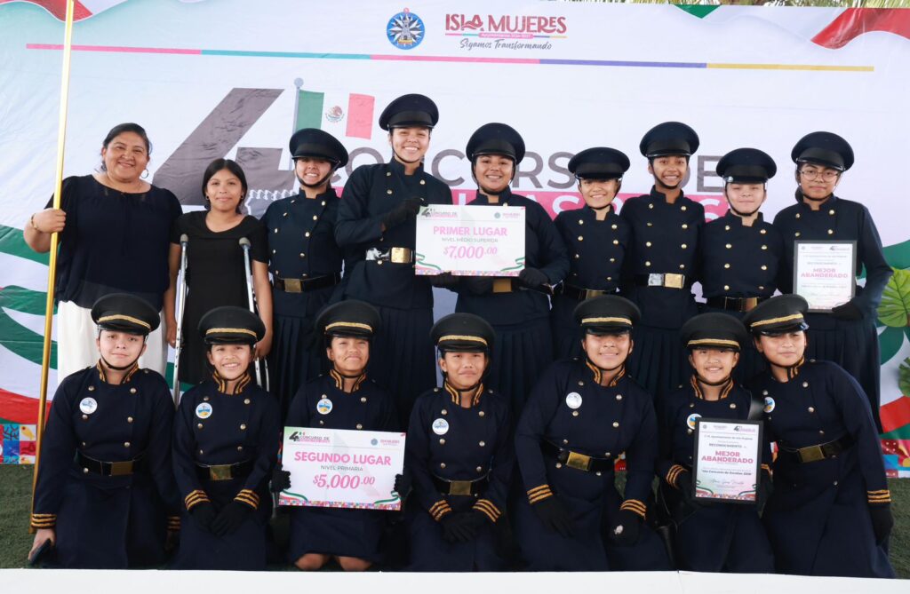 Las escoltas ganadoras del primer lugar fueron la Primaria César Mendoza, la Secundaria Técnica No. 1 “Benito Juárez” y el Colegio de Bachilleres Plantel Isla Mujeres.