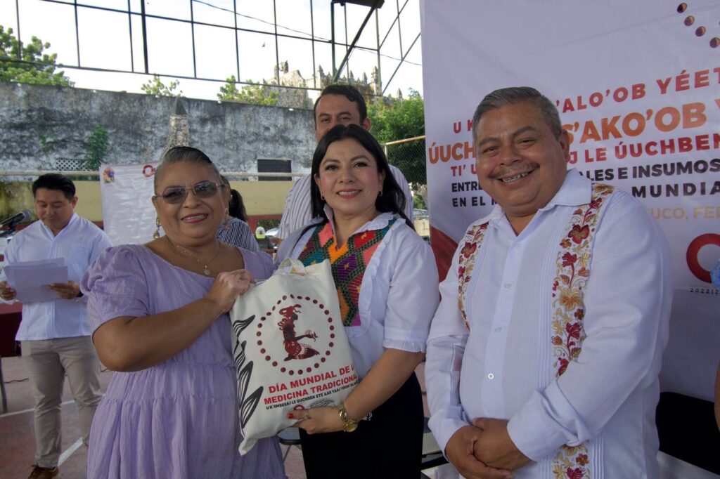 Durante la jornada, 25 médicas y parteras tradicionales de las comunidades de Tihosuco, Tepich, Santa Rosa, Polyuc, San Luis, Betania, Uh May, Kampolkolché y Petcacab fueron reconocidas con la entrega de materiales esenciales como monitor Doppler digital, perilla nasal, tijeras quirúrgicas rectas, cinta métrica, bote de alcohol, cintas umbilicales, vendas postparto, gasas, bolsa de algodón, gel antibacterial, cubrebocas y guantes médicos, herramientas que fortalecen su labor cotidiana y contribuyen a brindar una atención digna y segura en sus localidades.