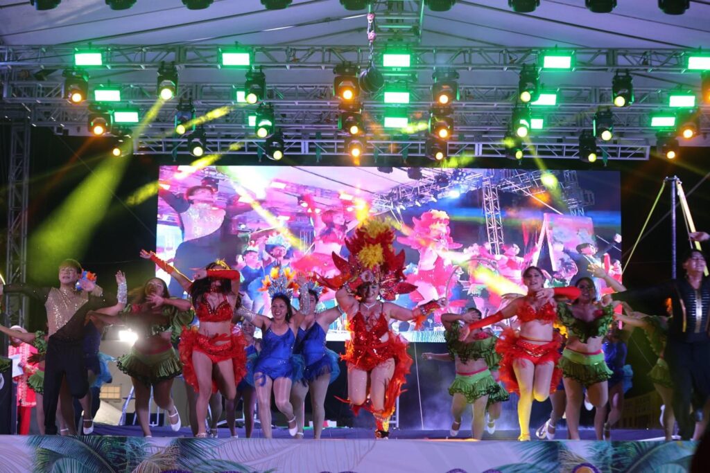 La noche continuó con la presentación de la comparsa “Fusión del Caribe”, que llenó el escenario de ritmo y energía, seguida de una emotiva mención a todas y todos los ex Reyes del Carnaval de los años 2023, 2024 y 2025, a quienes se reconoció su aportación.