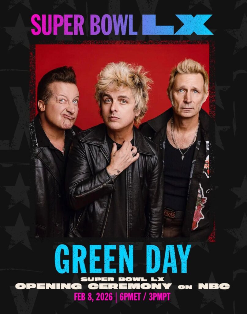 La banda liderada por Billie Joe Armstrong se presentará el domingo 8 de febrero, durante la ceremonia inaugural del Super Bowl 60.