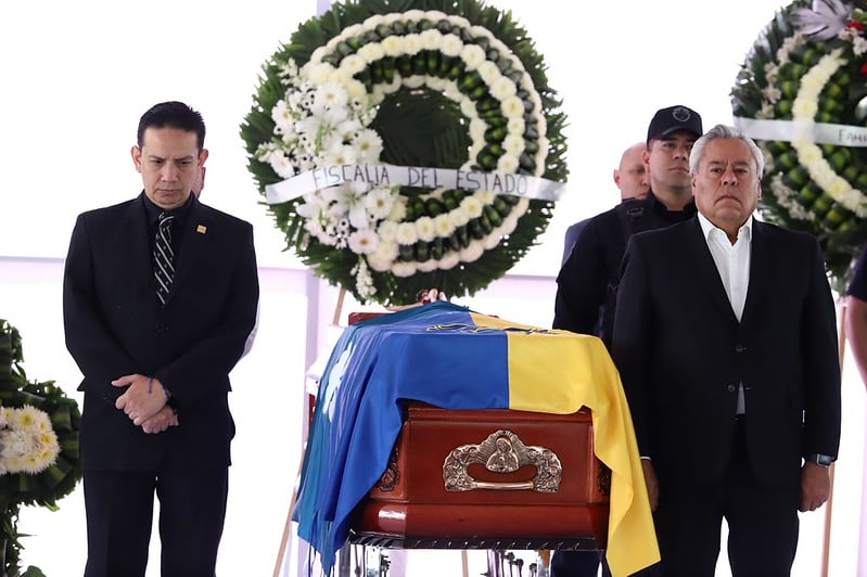 Autoridades estatales, vicefiscales y representantes de corporaciones de seguridad participaron en una guardia de honor en su memoria.
