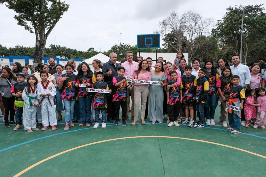 CANCÚN.- La gobernadora Mara Lezama Espinosa inauguró la segunda etapa del Centro Comunitario “Javier Olvera Iglesias”, acompañando a Erick Olvera Silveira, director general de Entorno y Convivencia AC, que abre nuevas oportunidades de aprendizaje, convivencia y desarrollo para las familias de la colonia Paraíso Maya.