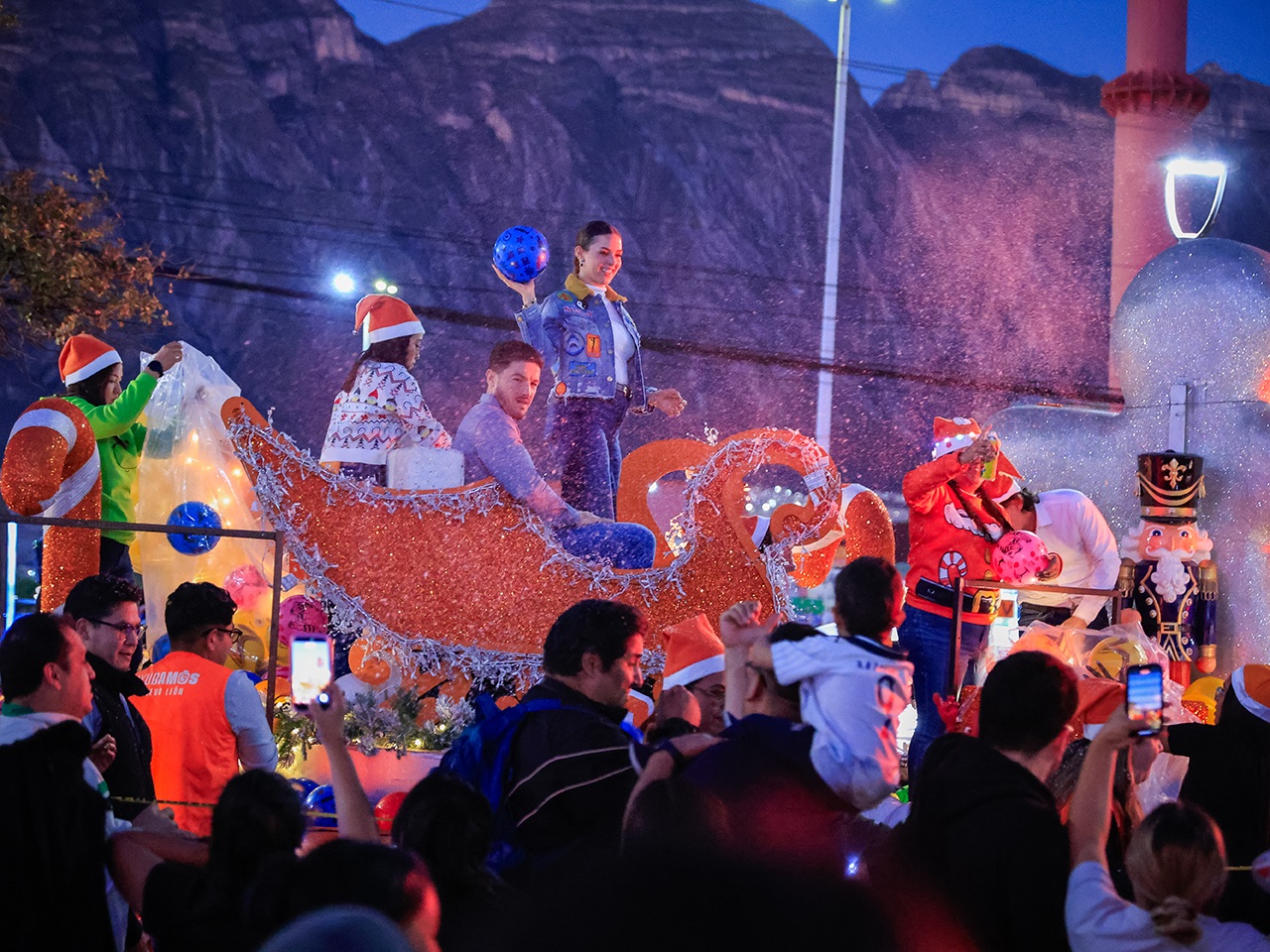 Llevan Samuel y Mariana espíritu navideño a Santa Catarina con desfile