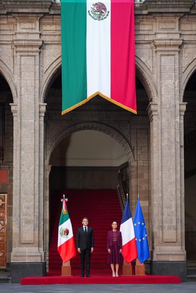 CDMX.-El presidente de Francia, Emmanuel Macron, arribó a la Ciudad de México en la madrugada del 7 de noviembre de 2025 para una visita oficial y fue recibido en el Palacio Nacional por la presidenta Claudia Sheinbaum.