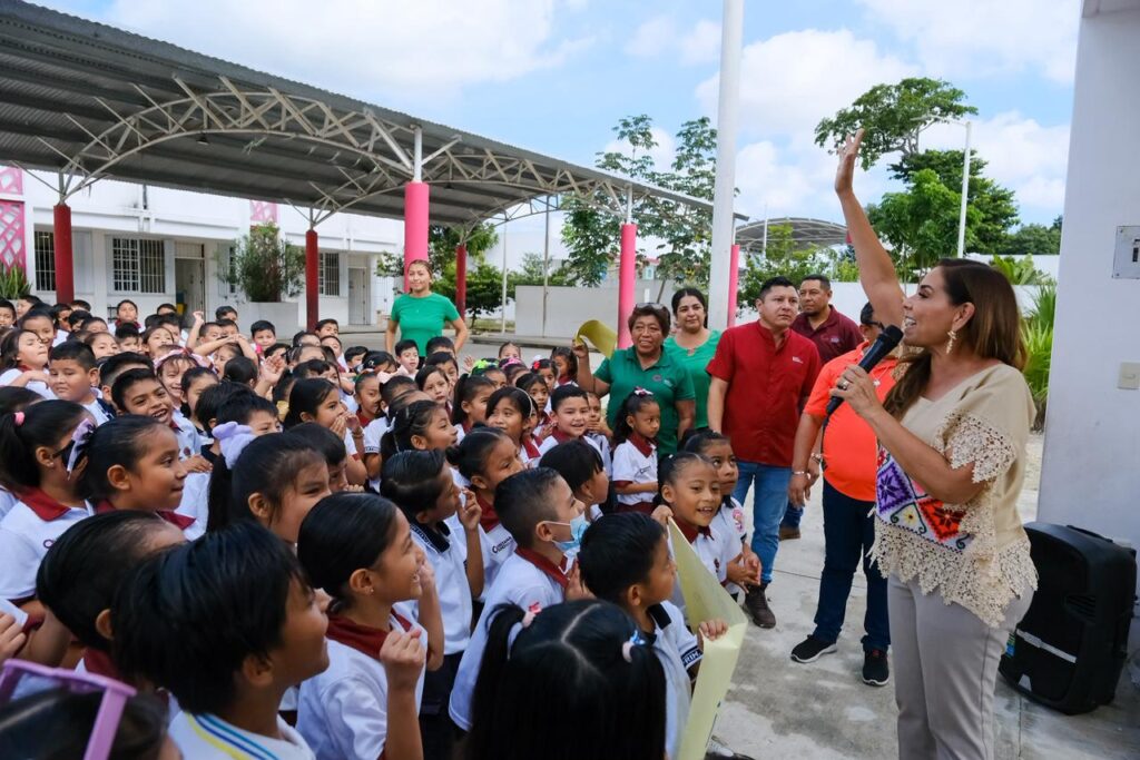 CANCÚN.- Durante una visita a la escuela primaria urbana federal “Matilde Montoya”, la gobernadora Mara Lezama Espinosa resaltó la importancia de contar con domos escolares como infraestructura clave para mejorar las condiciones de aprendizaje, el desarrollo físico y el bienestar de niñas y niños en la entidad.