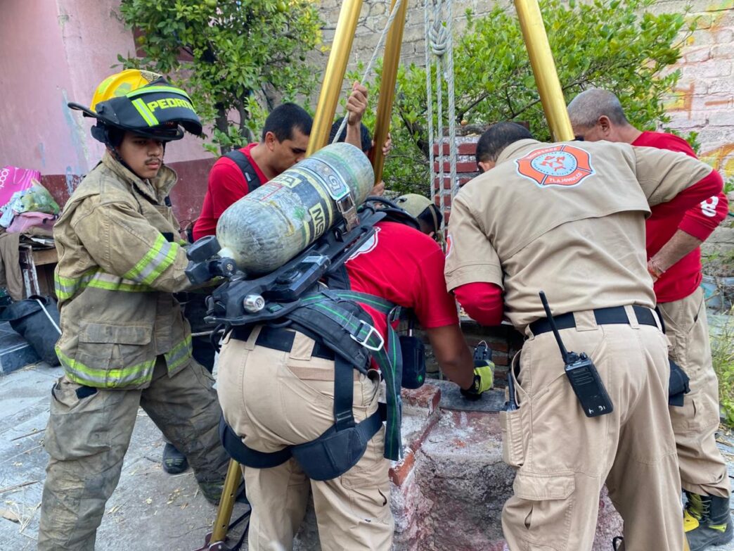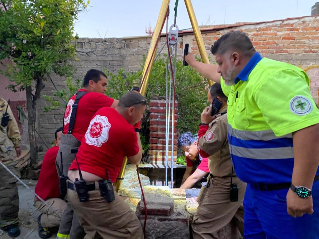 Bomberos instalaron equipo de cuerdas y descenso controlado, permitiendo el acceso al interior del pozo, el cual tenía una profundidad aproximada de 15 metros.