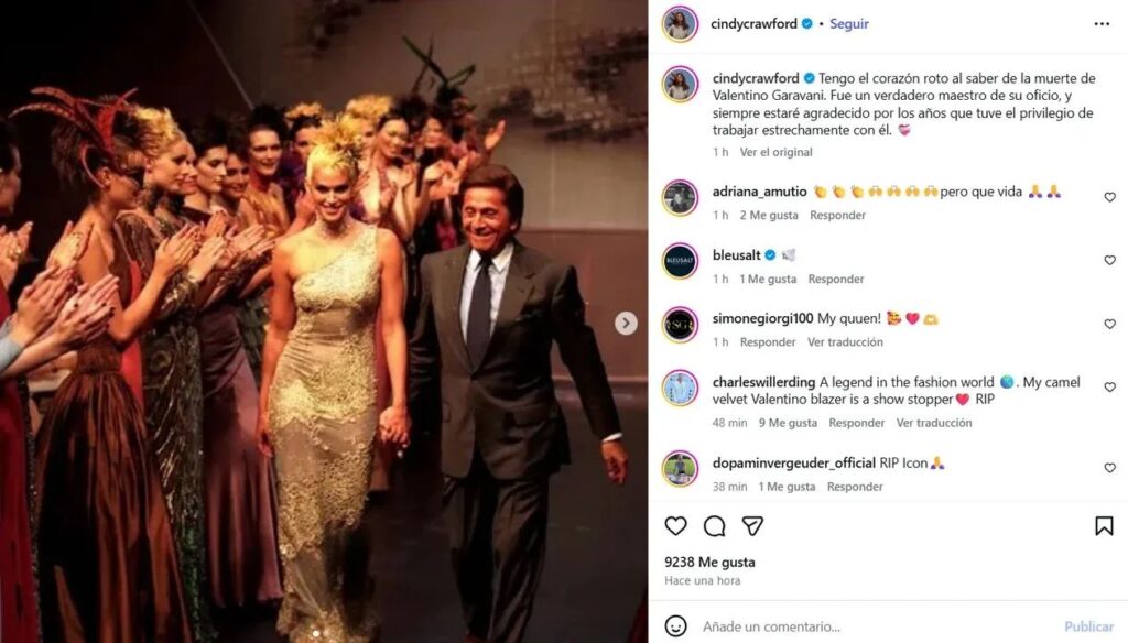 El dolor también fue compartido por supermodelos icónicas como Cindy Crawford, quien recordó al diseñador como un verdadero maestro de su oficio, agradeciendo los años de colaboración y aprendizaje a su lado.