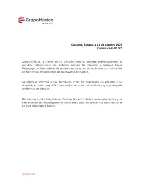 Al conocer los hechos, Grupo México emitió un comunicado expresando sus condolencias a las familias de los fallecidos y aseguró que ya notificó a las autoridades correspondientes para esclarecer el accidente.