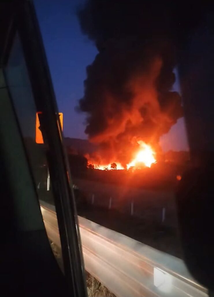 - El siniestro se registró la noche del sábado, cuando la unidad de carga volcó o perdió control, generando una explosión seguida de incendio en la autopista.