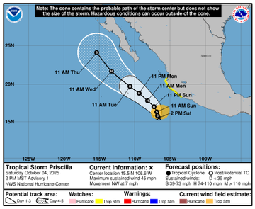 El huracán Priscilla ha evolucionado recientemente a categoría 1 según reportes del Servicio Meteorológico Nacional (SMN) y Conagua. El sistema se localiza frente a las costas del Pacífico, acercándose al occidente del país.
