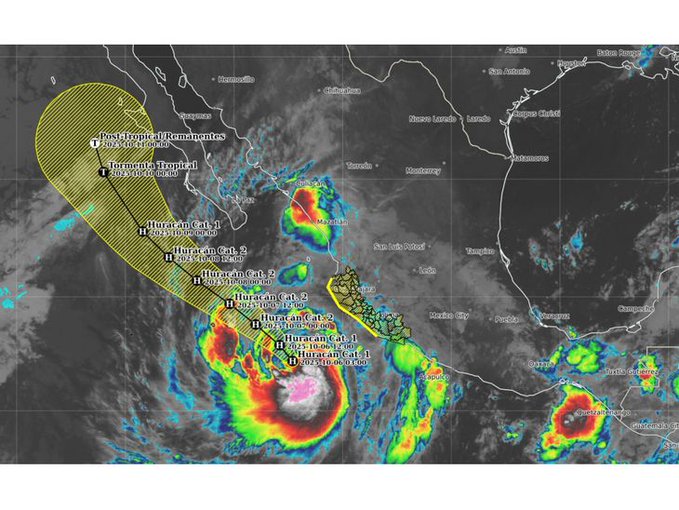 - Oleaje elevado: olas de 4 a 5 metros en costas de Jalisco, Colima y Michoacán Adicionalmente, las lluvias podrían ir acompañadas de descargas eléctricas, encharcamientos, deslaves e inundaciones en zonas bajas.