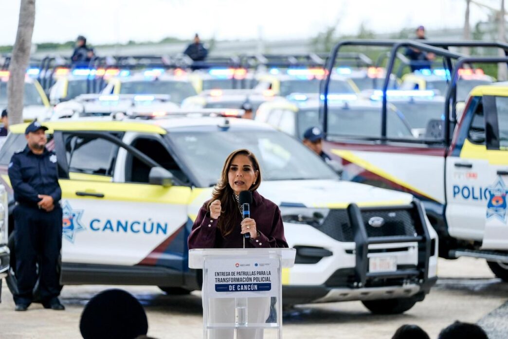 CANCÚN.– Con el objetivo de fortalecer la capacidad de respuesta de las corporaciones policiacas, la gobernadora Mara Lezama Espinosa y la presidenta municipal Ana Paty Peralta, entregaron 70 nuevas unidades que se suman a las tareas de seguridad en Cancún, durante un evento realizado en el Malecón Tajamar.