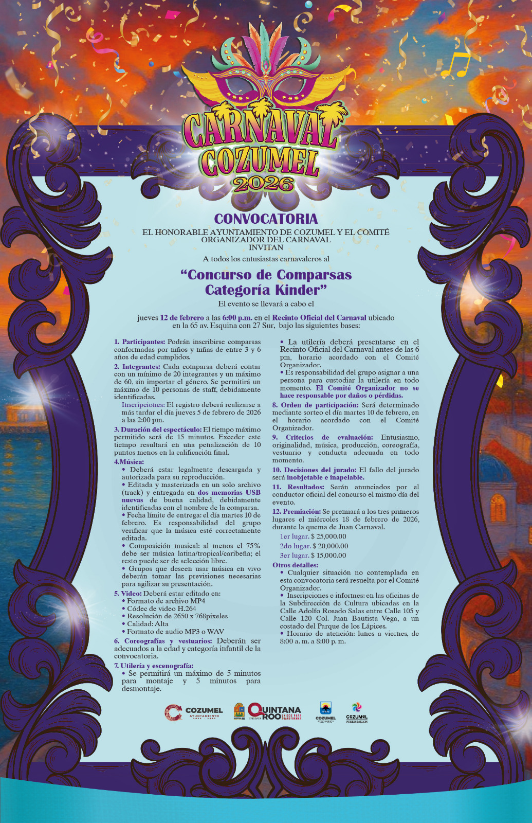 CozumelConvocan para participar en los Concursos de comparsas categorías “Kínder” e “Infantil” del Carnaval Cozumel 2026byAlejandro Pérez06/01/2026